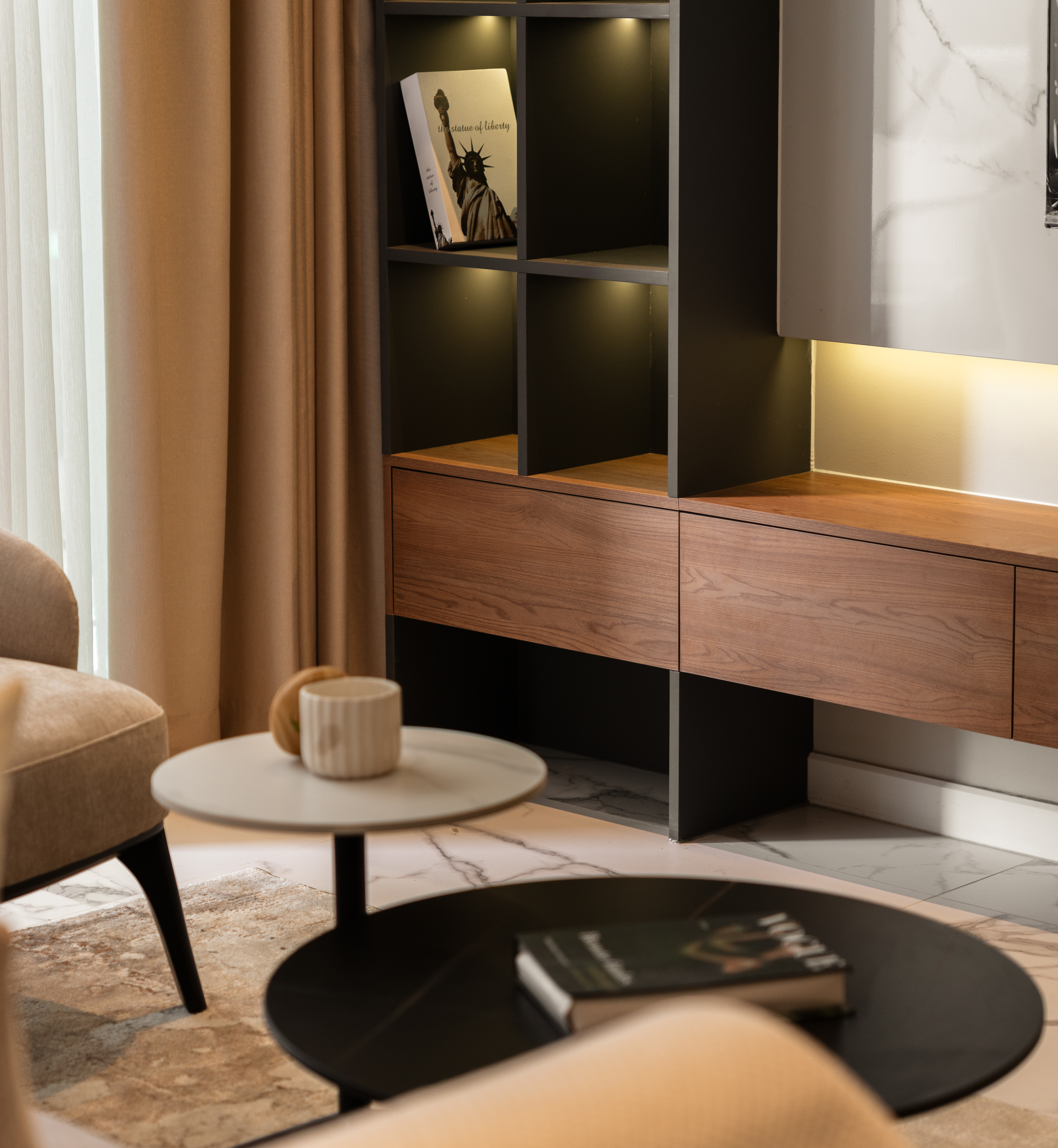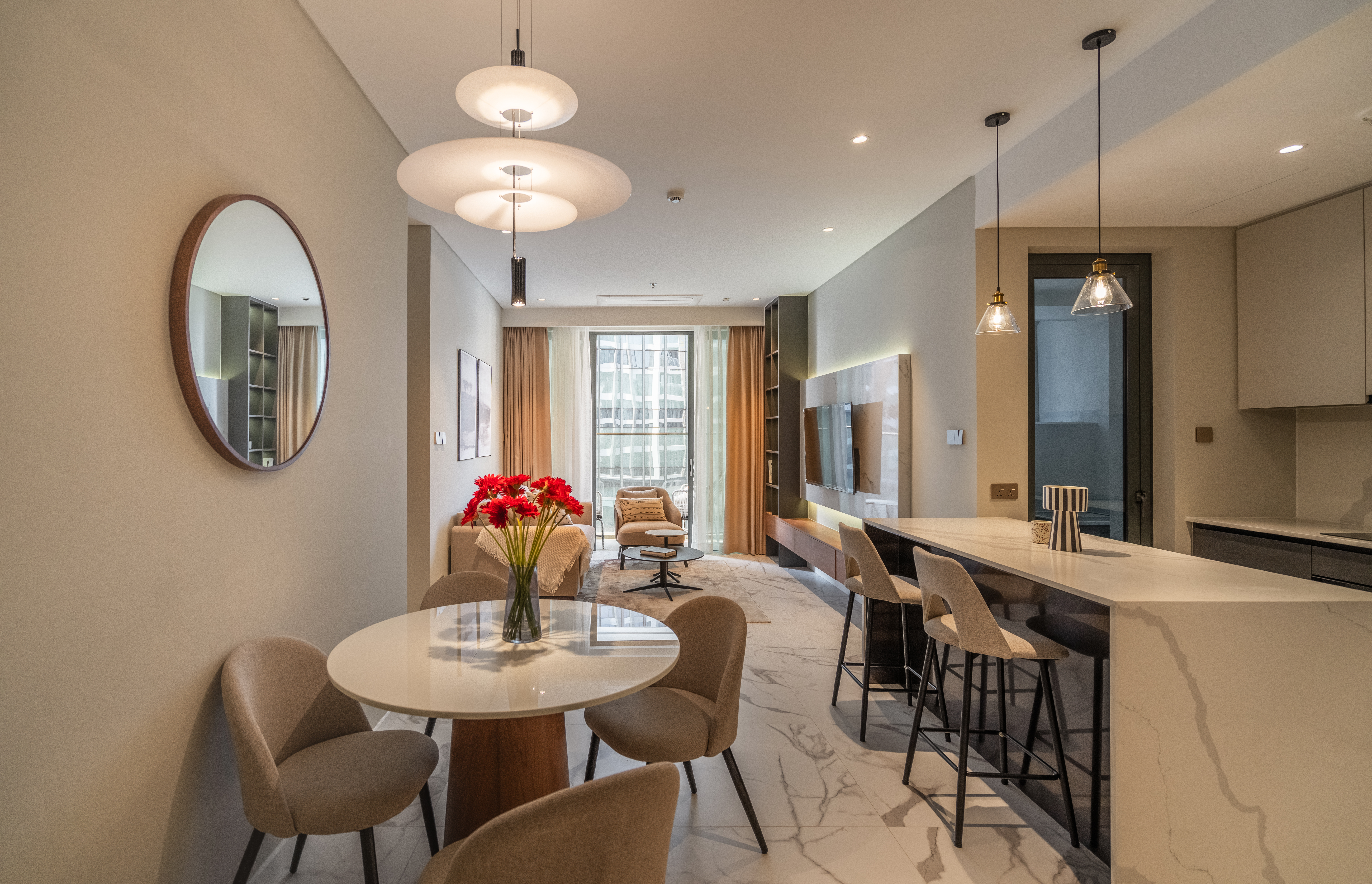 Nếu ví ngôi nhà là một bức tranh, thì căn hộ này chính là một tác phẩm nghệ thuật ấn tượng, nơi mà ranh giới giữa hiện đại và cảm hứng hoài cổ được xóa nhòa. Không gian sống này không chỉ để ở, mà là để “cảm”, để đắm chìm trong sự thư thái và những xúc cảm thẩm mỹ tinh tế.